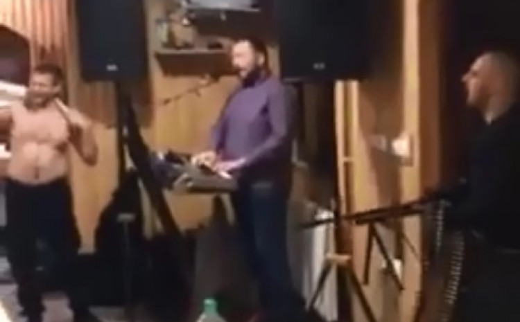 U uznemirujućem videu se vidi nekoliko muškaraca skinutih do pasa kako pijani slušaju muziku uživo.