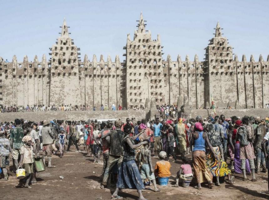 U gradu Djenne na obali rijeke Bani u Maliju počeo je tradicionalni Festival blata tokom kojeg svi mještani i turisti učestvuju u nanošenju zaštitne fasade na najvećoj džamiji u svijet uizgrađenoj od blata.