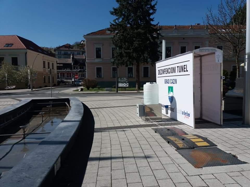 Prvi tunel takve vrste u Unsko-sanskom kantonu postavljen je početkom aprila u Cazinu, ispred Doma zdravlja, jer se ova ustanova svakodnevno susreće s brojnim pacijentima koji trebaju usluge Doma zdravlja. Od jučer se još jedan takav tunel nalazi u samom centru grada, kod fontane na kružnom toku.