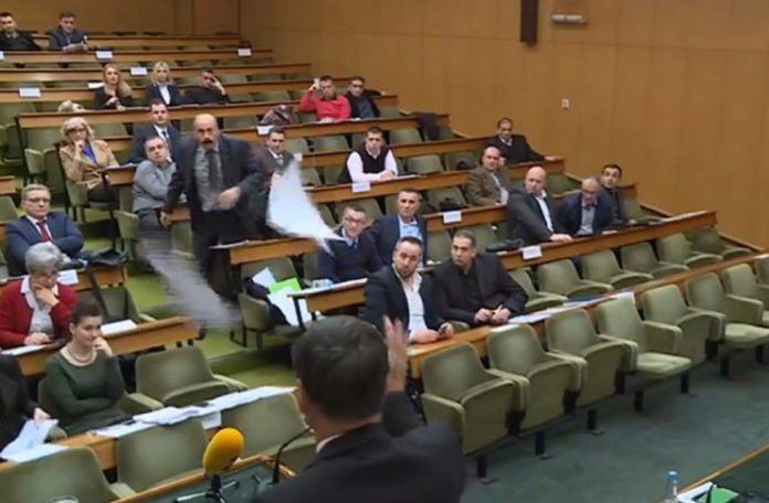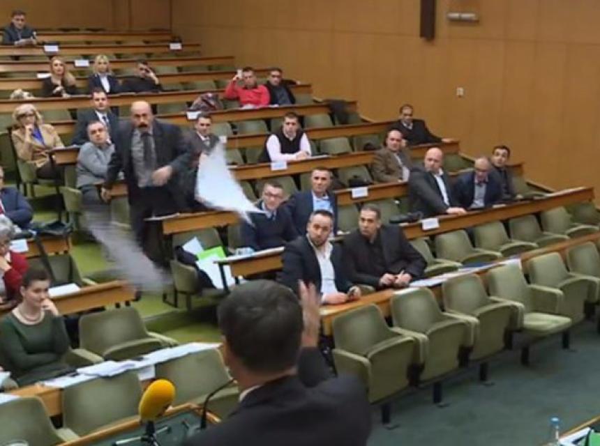 Nakon što je gradonačelnik Zenice Fuad Kasumović za govornicom izjavio “da je Mesud Keleštura potpisao pismo koje su mu sastavili kladioničari”, vijećnik Mesud Keleštura je Kasumovića gađao fasciklom i poručio: