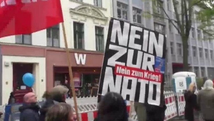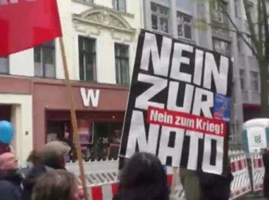 Demonstranti su uzvikivali slogane poput "Ne ratu", "Odbaciti NATO" i "Nema pobjede u ratu".