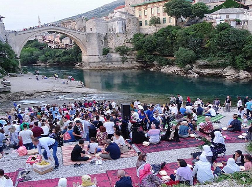 Tradicionalni iftar ispod Starog mosta u Mostaru privukao je više od hiljadu mladih ljudi, a organizovali su ga Info - servis za mlade MIZ Mostar u suradnji sa Muftijstvom mostarskim, Unijom studenata univerziteta "Džemal Bijedić", KEC "Sehara" i City TV Mostar.