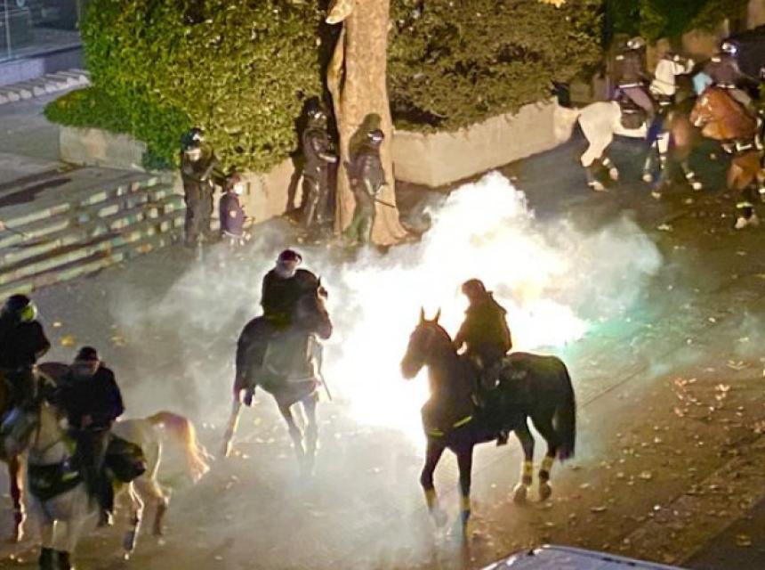 Hojs je kazao da je u neprijavljenim protesttima na kraju učestvovalo od 400 do 600 ljudi koje je nazvao "anarhistima", dodavši da su među njima zapaženi i ekstremni pripadnici navijačkih skupina, te elementi "podzemlja", a policiju su napadali fizički i granitnim kockama, pa je ona bila prisiljena upotrijebiti vodeni top i druga sredstva prisile.