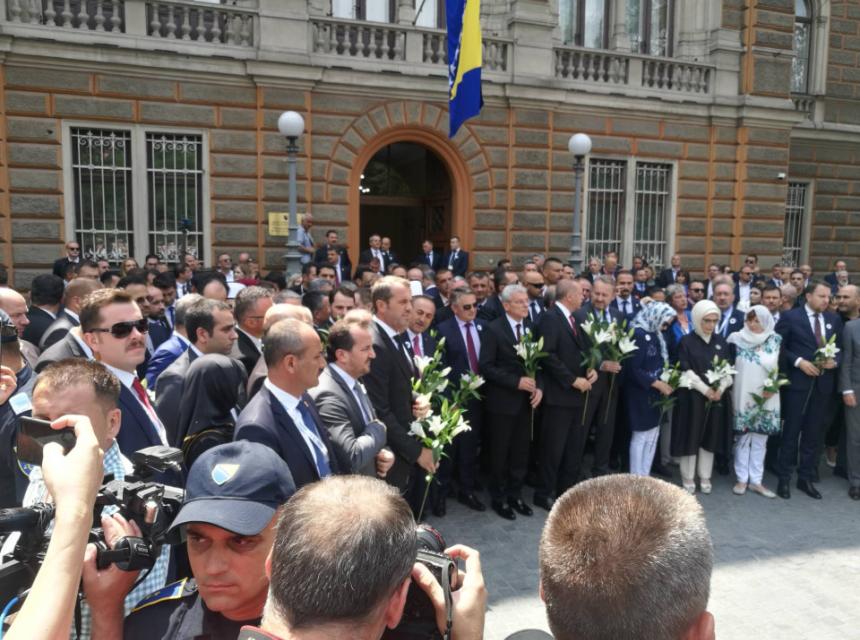 Ispred zgrade Predsjedništva BiH prisutno je više stotina ljudi i brojni zvaničnici.