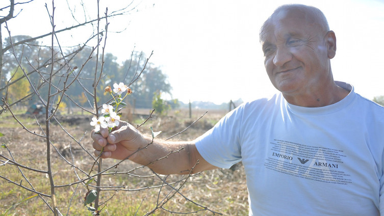 Visoke dnevne temperature u drugoj polovini oktobra, u dane Miholjskog ljeta, kao da su iznenadile i voćke. U voćnjaku Nikole Nikolića, vrsnog kalemara i poznavaoca autohtonih sorti voća, u semberskom selu Patkovača, procvjetala je višnja.