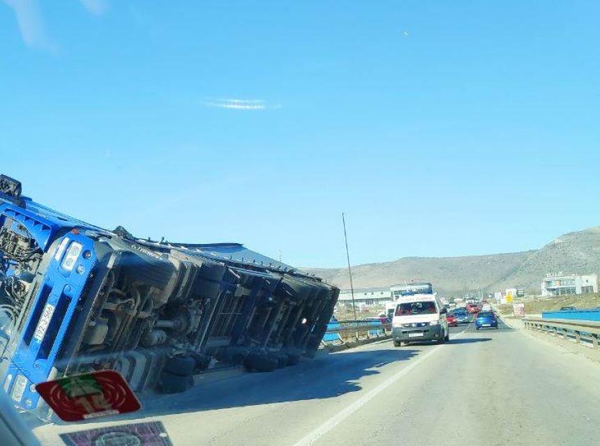 Snažan vjetar načinio je sinoć i jutros štetu u Mostaru, a kako javlja usljed snažnih udara - došlo je prevrtanja kamiona na mostu u naselju Rodoč.