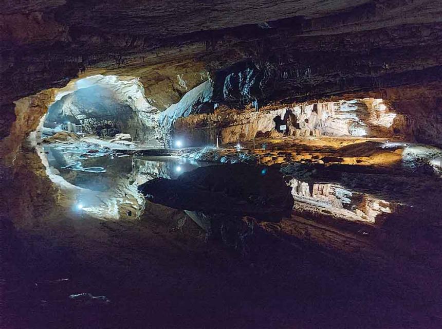 Nalazi se u Općini Ravno, na zapadnom kraju Popovog polja, na 260 metara nadmorske visine. Spada u red najljepših i najbitnijih speleoloških objekata BiH. Obiluje vodom, ima četiri vodena toka i više desetaka manjih periodičnih tokova s mnogim podzemnim jezerima: 180 m dugo je Veliko jezero, zatim Duboko jezero s najvećom dubinom od četiri metra, Malo jezero i druge. Prvi put se spominje polovinom prvog stoljeća u djelu “Povijest prirode”.