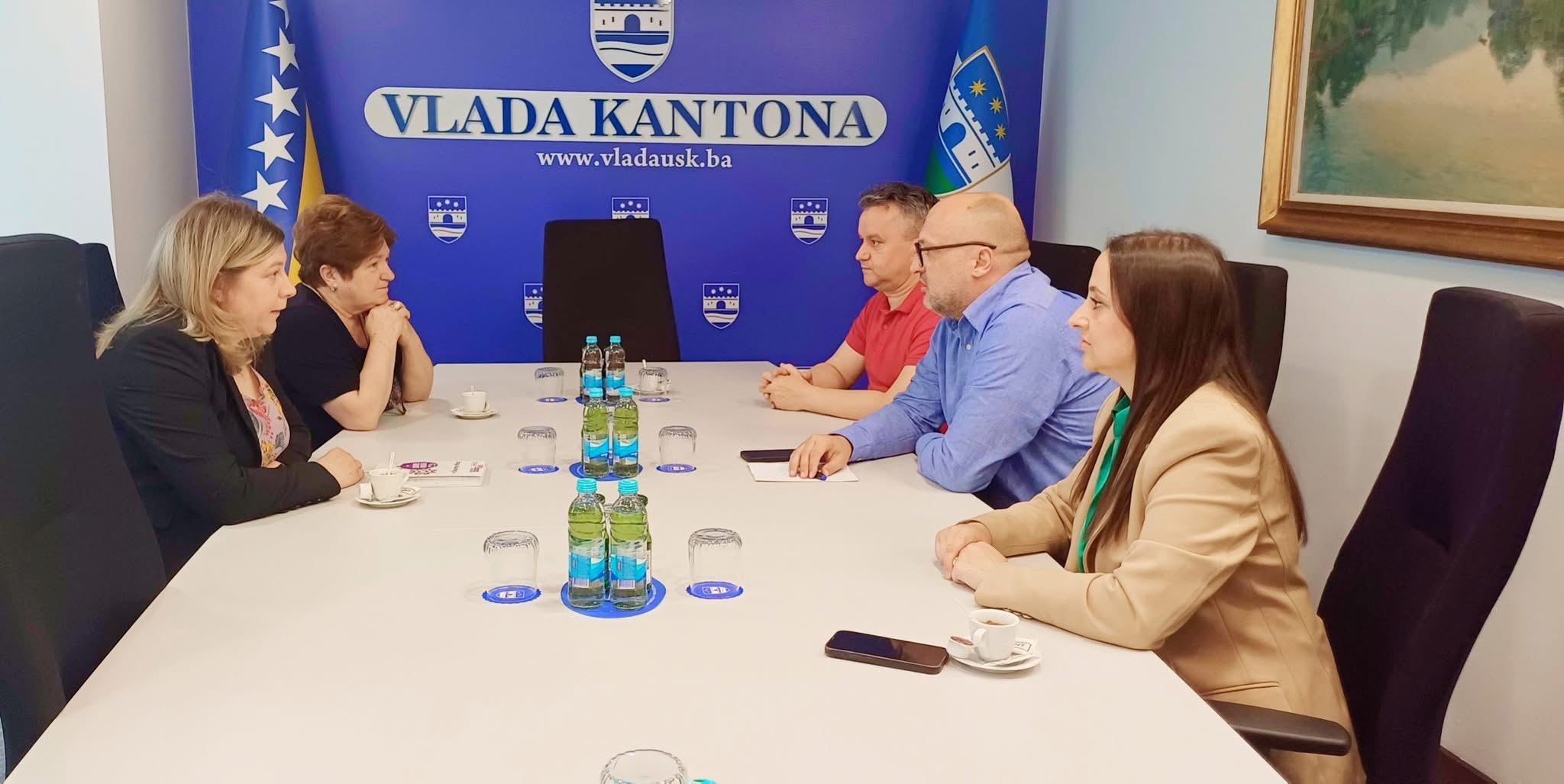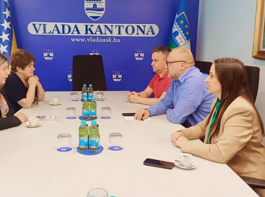 Premijer Unsko-sanskog kantona Nijaz Hušić, predsjedavajući Skupštine USK Zikrija Duraković i predsjednica Komisije za pravdu, ljudska prava, građanske slobode i jednakopravnost spolova Aida Pašić-Čizmić sastali su se danas s predstavnicama udruženja “Glas žene” iz Bihaća, Enisom Raković i Nejrom Raković.