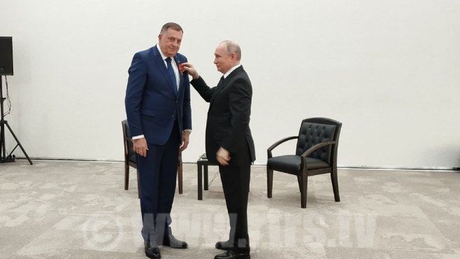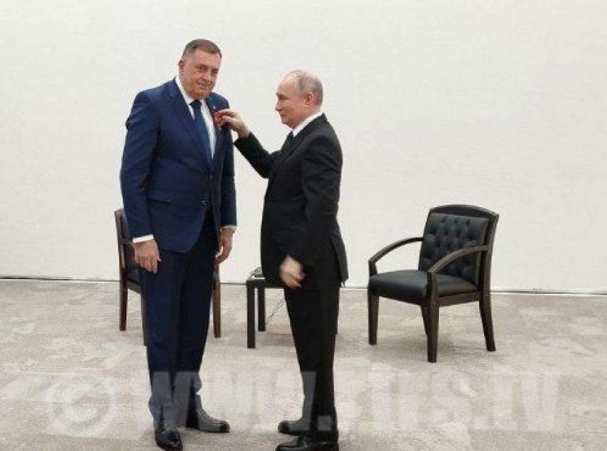 Predsjednik manjeg bh. entiteta RS Milorad Dodik sastao se danas s prvim čovjekom Rusije Vladimirom Putinom koji mu je tom prilikom uručio Orden Aleksandra Nevskog.