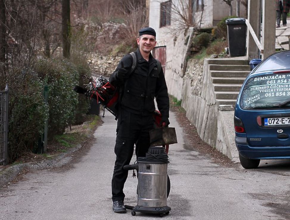 Crno odijelo i kapa, zlatni dugmići s malenim simbolima dimnjačara i osmijeh nakon obavljenog posla dočekali su nas pri susretu s Demirom. S velikim oduševljenjem priča kako je završio jedan dimnjak te da ima vremena pola sata da nam ispriča svoju životnu priču prije novog prljanja ruku.