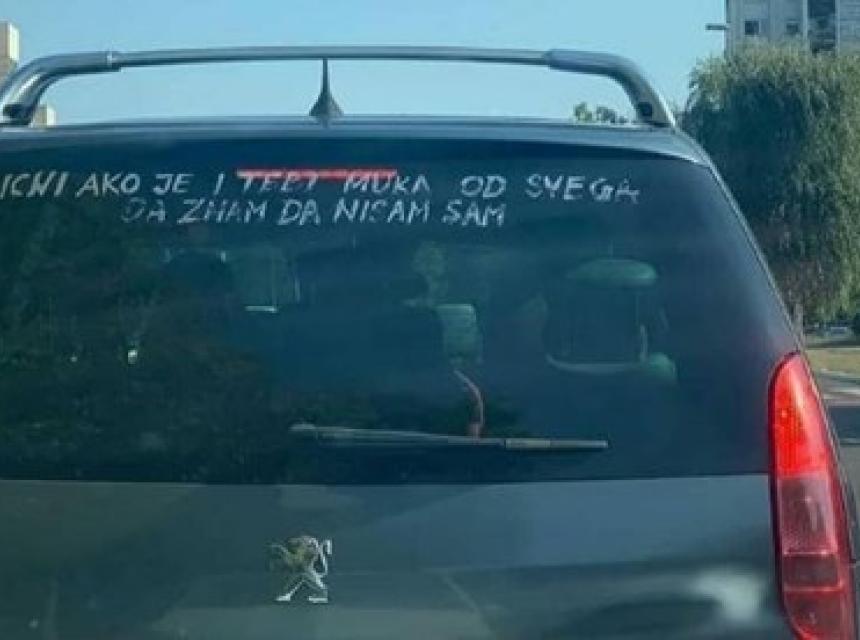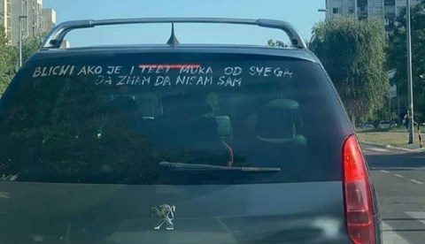 "Blicni ako je i tebi muka od svega, da znam da nisam sam", piše na staklu vozača koji je primijećen u Novom Beogradu.