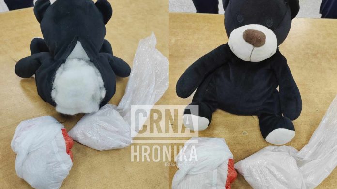 Carinski službenici su 27. aprila 2024. godine na graničnom prelazu Gradina, u saradnji sa policijom, sprečili neobičan pokušaj krijumčarenja, zaplijenivši skoro kilogram, kako se sumnja sintetičke droge metamfetamin, koju je jedan putnik skrivao u plišanom medi.