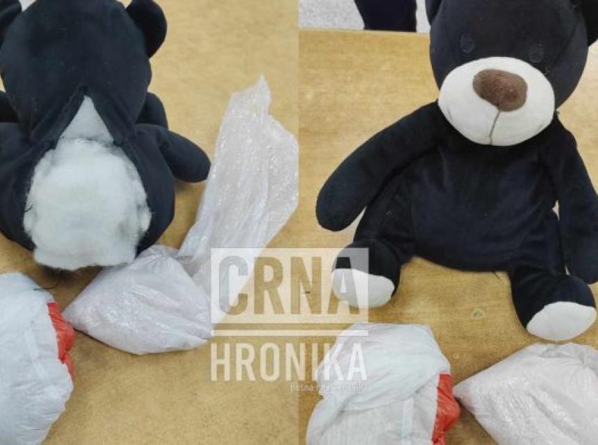 Carinici su tokom kontrole na zadnjem sjedištu kombija zatekli crnog medu, koji je bio neuobičajeno težak za plišanu igračku, što je izazvalo sumnju da je u njemu nešto skriveno.