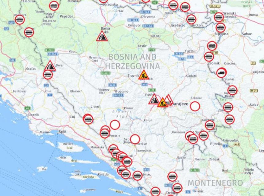 Ugaženog snijega na kolovozu ima u višim predjelima zapadne i sjeverozapadne Bosne. Na ostalim dionicama saobraća se po pretežno mokrom kolovozu. Niske temperature pogoduju formiranju poledice, pa se vozačima savjetuje pojačan oprez. Posebna pažnja skreće se na puteve u višim predjelima, kao i na mostovima i prilazima tunelima. Magla i niska oblačnost smanjuju vidljivost na širem području Bugojna i Goražda .