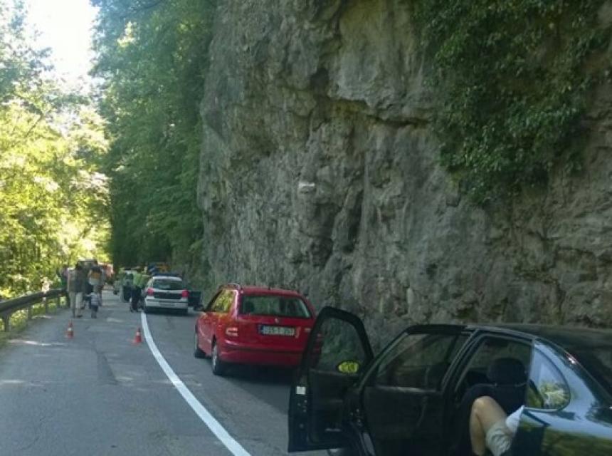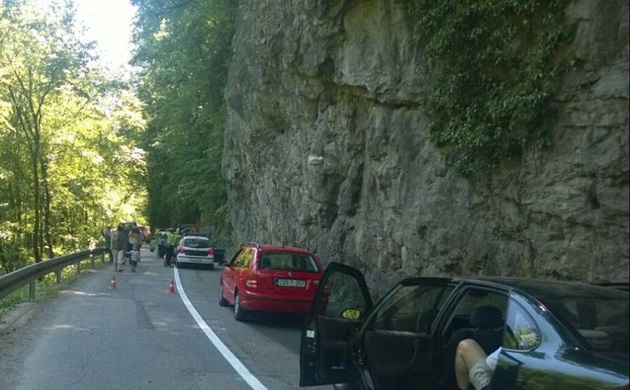 Na magistralnom putu M-18 Sarajevo-Foča zbog većeg odrona kod mjesta Sijeračke Stijene saobraća se jednom trakom.