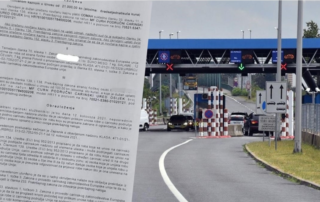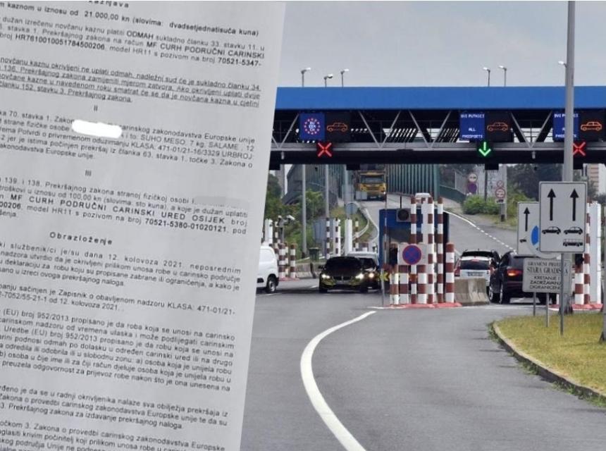 Pronađeno meso i salama su oduzeti, a djelatnici Carine su mu naplatili novčanu kaznu u visini od 14.000 kuna (cca 1.900 eura).
