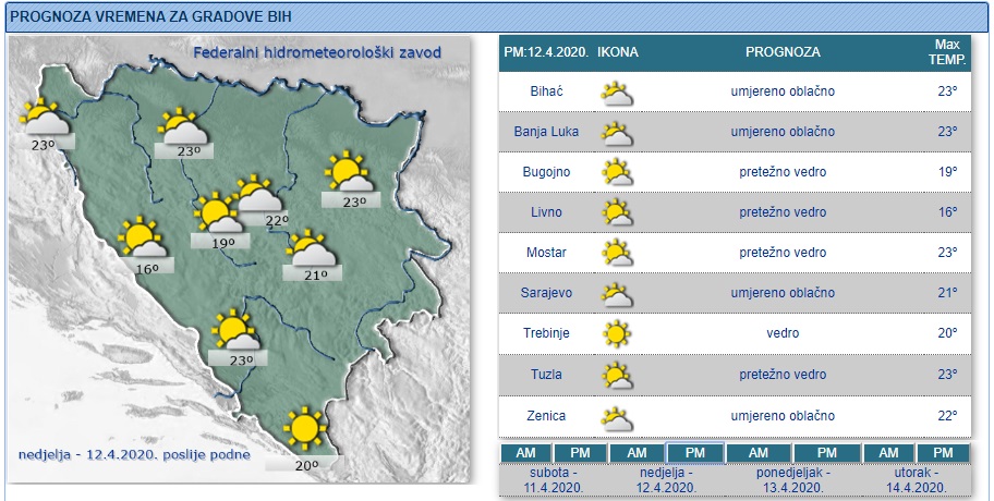 Donosimo vam redovnu vremensku prognozu Federalnog hidrometeorološkog zavoda za 12.04.2020.