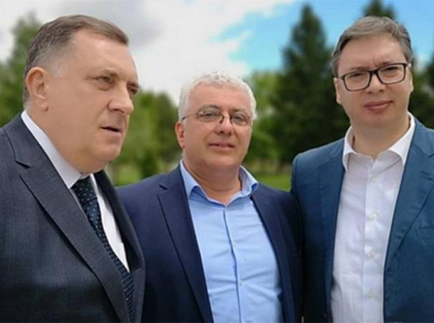 "Predsjednik Srbije Aleksandar Vučić i predsjedavajući Predsjedništva BiH Milorad Dodik razgovarali su danas u Nišu, nakon prikaza sposobnosti VS i MUP, povodom Dana pobjede, sa liderom Demokratskog fronta Andrijom Mandićem o aktuelnoj političkoj situaciji u regionu", stoji ispod fotografije na instgram nalogu "budućnostsrbijeav".