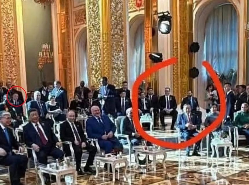 Predsjednik Republikanske stranke iz Srbije Nikola Sandulović objavio je fotografiju na kojoj se vidi da su Dodik i Vučić, koji se često hvale dobrim odnosima s ruskim liderom Vladimirom Putinom, smješteni u zadnje redove.