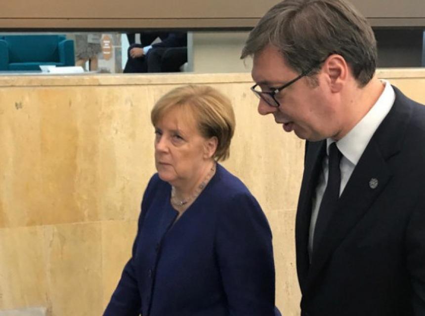 Sagovornici su naglasili da je neophodno raditi na ubrzanju svih aktivnosti na unapređenju dijaloga s Prištinom, a predsjednik Vučić zahvalio je kancelarki Merkel na njenom doprinosu i podršci liderima zapadnog Balkana, kao i na podršci infrastrukturnim projektima i digitalnoj agendi.