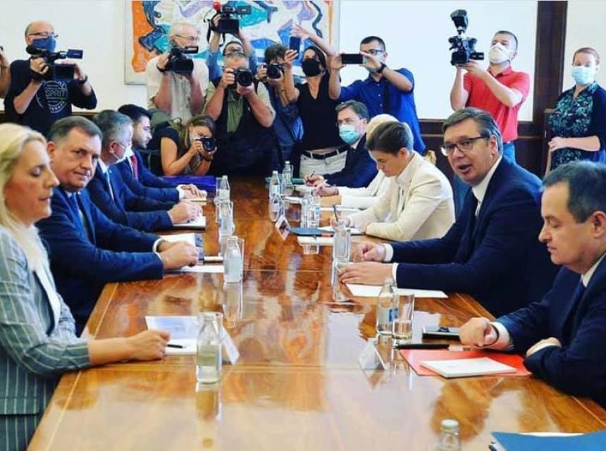 Dodik, koji se inače nalazi na crnoj listi Sjedinjenih Američkih Država, rekao je da je bio zadovoljan razgovorom sa Vučićem. Govorio je i o pitanjima koja se odnose na Kosovo, a zbog kojih će se u Bijeloj kući početkom septembra voditi pregovori.