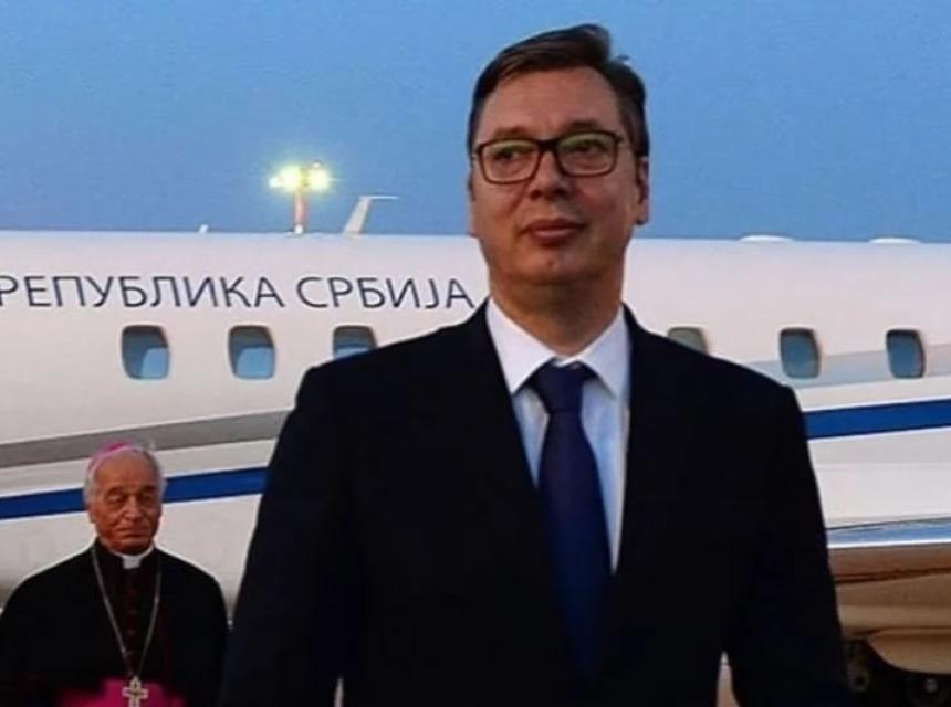 Vučića su na aerodromu dočekali nadbiskup Francesco Kanalini i monsinjor Joseph Marfi, piše Oslobođenje.
