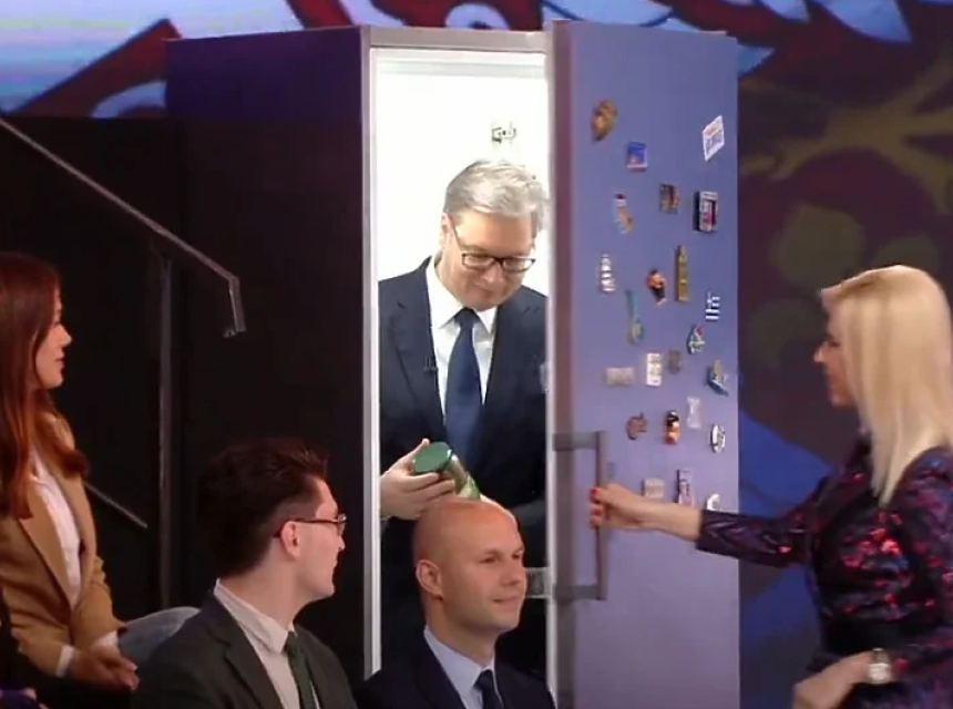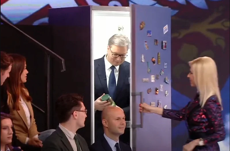 Vučić je nedavno snimio predizborni spot u kojem izlazi iz frižidera. Time se pokušava našaliti na svoj račun, s obzirom da se sveprisutan u javnosti i medijima.