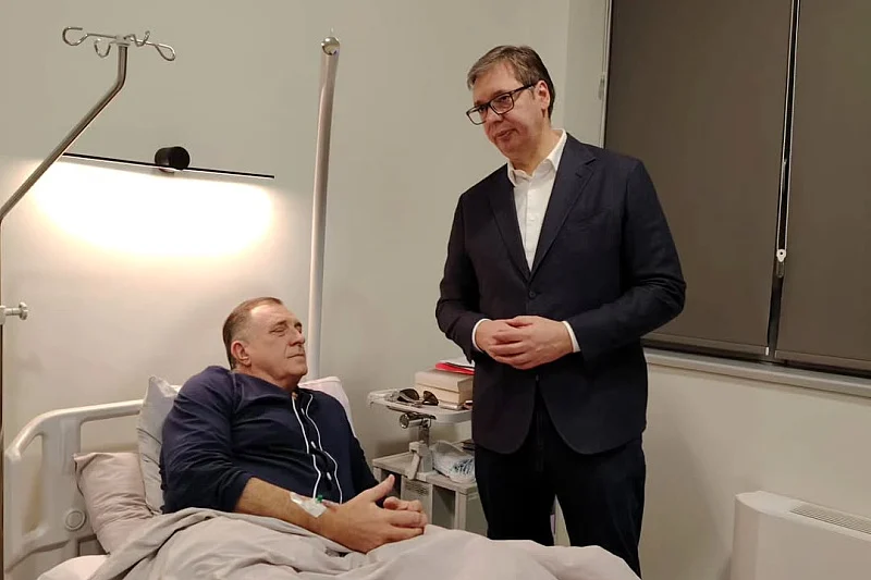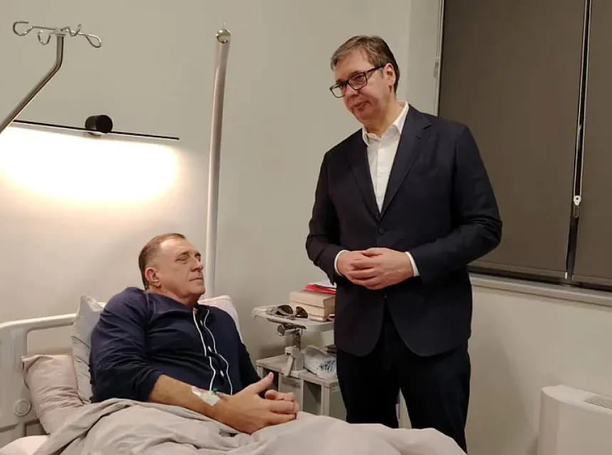 Predsjednik Srbije Aleksandar Vučić posjetio je u beogradskoj bolnici predsjednika bh. entiteta Republika Srpska Milorada Dodika.