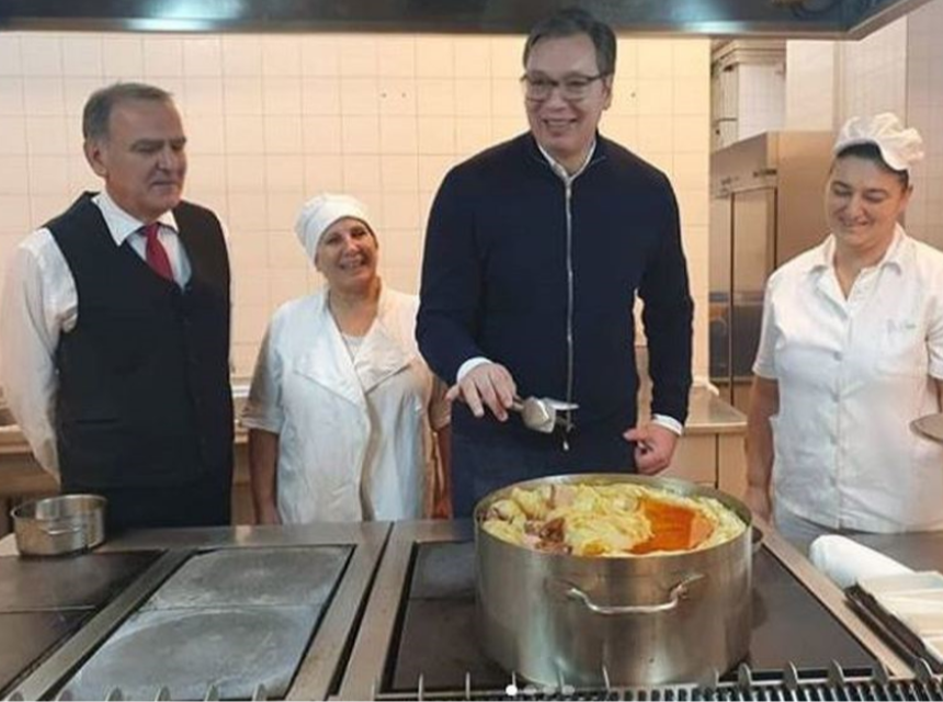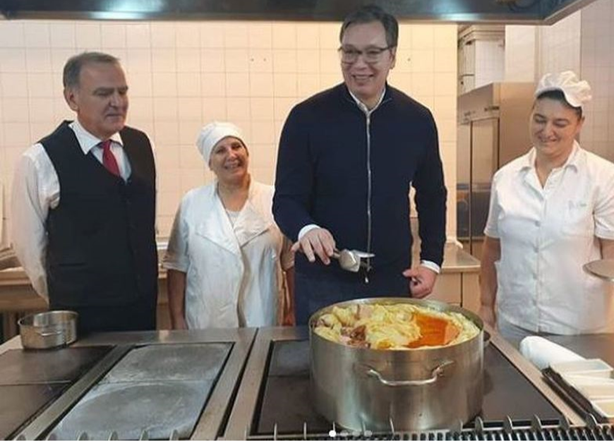 Hvala divnim kuharicama Jovanki Petrović i Gordani Nenadović, kao i Šćepanu Reljiću, što im nije teško da subotom rade i što uvijek pripreme najbolju hranu za zaposlene i naše goste – napisano je ispod fotografije objavljene na Instagram predsjednika Srbije.