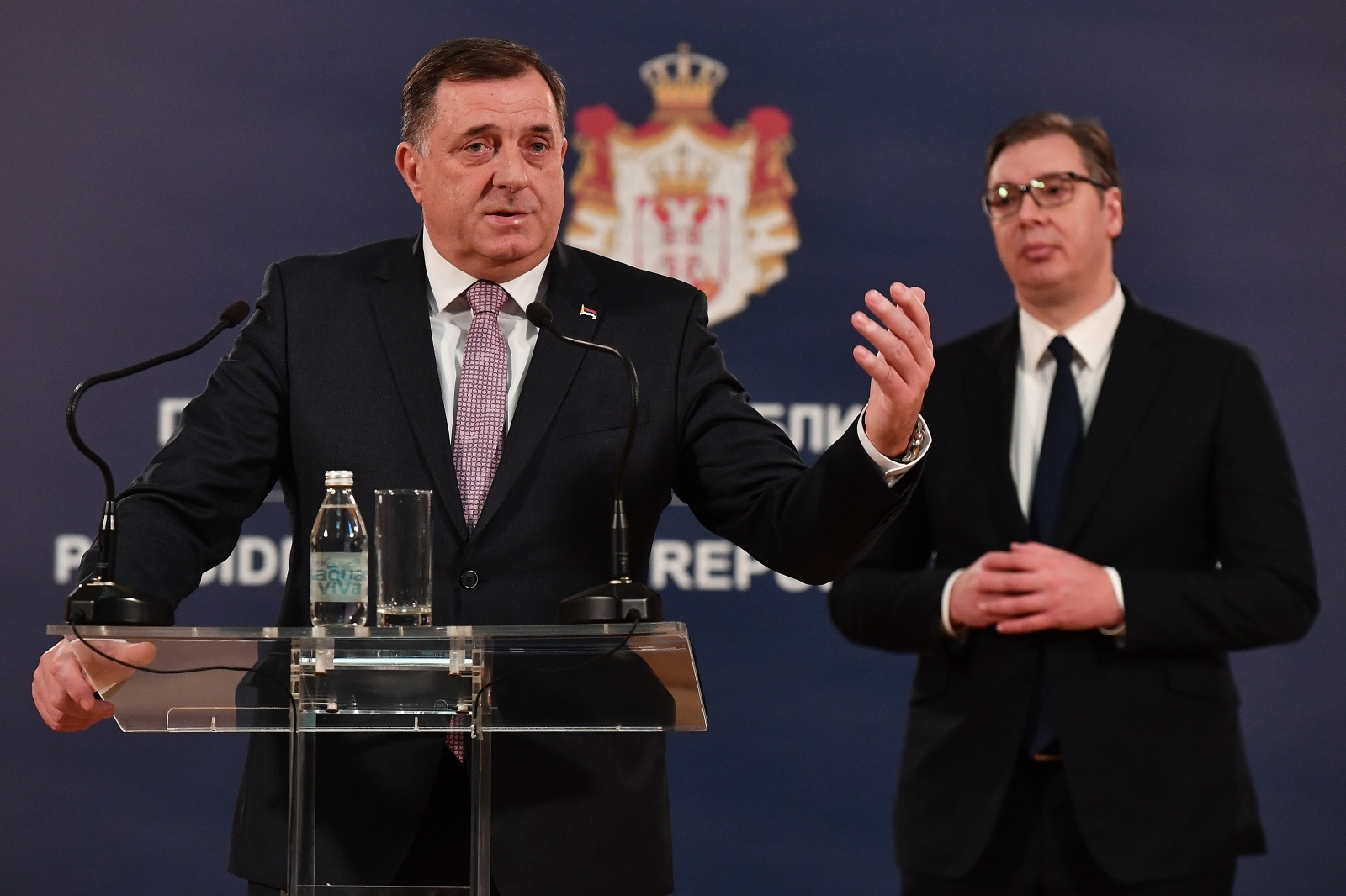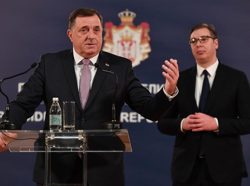 Opet smo ih na kratkoj pres konferenciji vidjeli zajedno: Aleksandar Vučić i Milorad Dodik. Duet čija polovina negira Bosnu i Hercegovinu, dok „ostatak“ redovno „podržava“ cjelovitost BiH. Moglo bi se reći kako su ti njihovi istupi puni nekog dogovorenog cinizma. Jedan će davati svoju izjavu, drugi će se kiselo smješkati. I obratno.