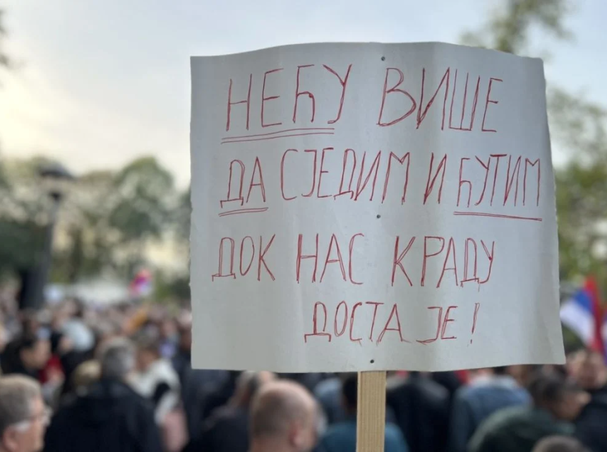 Od početka do kraja protesta uzvikivano je: "Mile, lopove". Protestima je prisustvovalo nekoliko hiljada ljudi, a incidenata nije bilo. Opozicionari su izrazili nezadovoljstvo na ulicama nakon što su jučer, 5. oktobra, predali zahtjev CIK-u da se ponovo prebroje glasovi za predsjednika RS-a i kao cilj su istakli to da se ponovo održe izbori za entitetskog predsjednika.