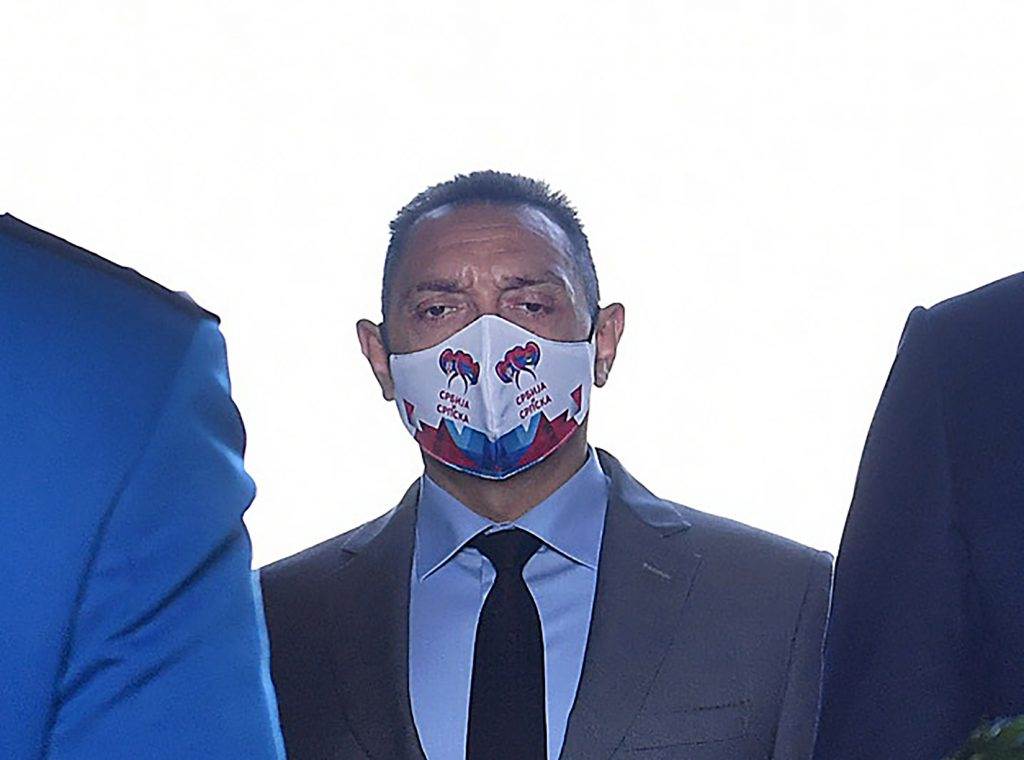 Naime, na zaštitnoj maski ministra Vulina bila su dva ukrštena srca sa zastavama Srbije i Republike Srpske. Ispod je i poruka: “Srbija i Srpska”.