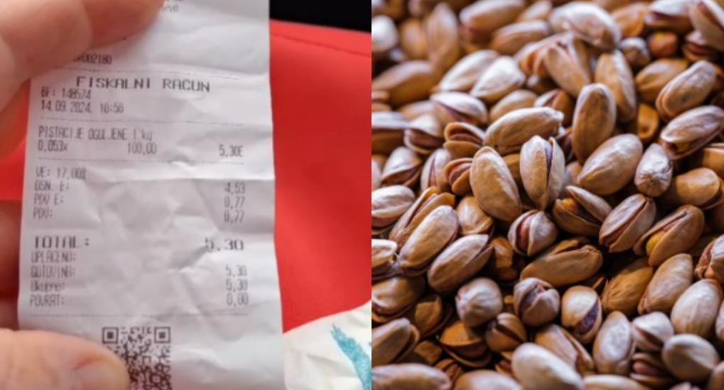 U videu je prikazala račun iz lokalne trgovine, otkrivajući kako cijena oguljenih pistacija u Sarajevu iznosi 10 KM po 100 grama, što znači da kilogram košta čak 100 KM.