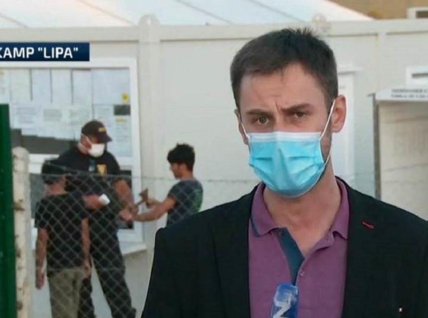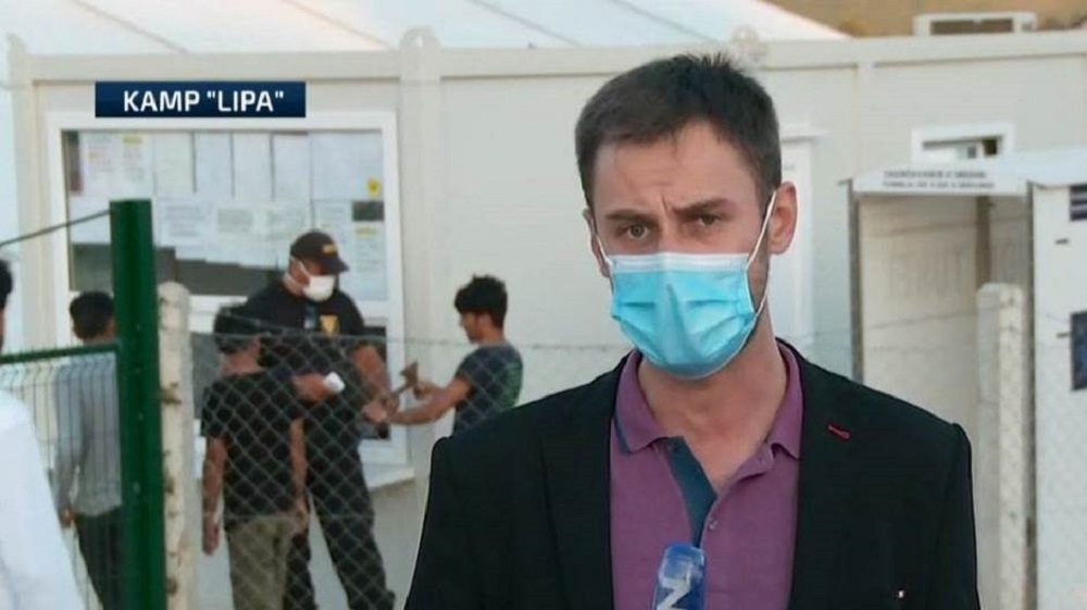 SARAJEVO/BIHAĆ, 28. augusta - Tokom javljanja reportera N1 uživo iz migrantskog kampa Lipa nadomak Bihaća, jedan od migranta je osiguranju predao sjekiru koju je, sudeći prema gestikulaciji sa osobom zaduženom za očuvanje reda i mira, pronašao u samom kampu.