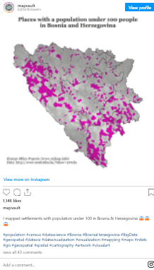 O tome kako se zemlja prazni najbolje ilustruje fotografija Miloša Popovića, istraživača Instituta za bezbjednost i globalna pitanja (ISGA) Univerziteta u Lajdenu, koja pokazuje mjesta u BiH sa populacijom ispod 100 stanovnika.