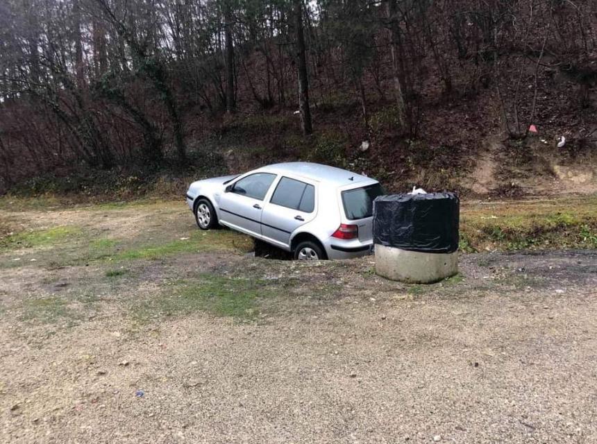 Na jednoj od velikih krivina ili zavoja, kako mještani nazivaju taj dio, automobil Golf se zaglavio i ostao u jednom kanalu.