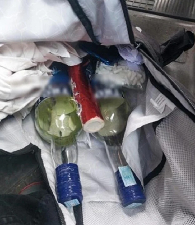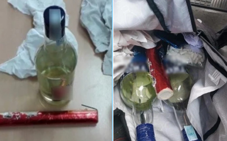 Uz upotrebu sredstava prisile, lice je odvedeno u službene prostorije, a kod njega je pronađen nož, jedno pirotehničko sredstvo - baklja, više staklenih boca napunjenih lako zapaljivom tečnošću i jedna improvizovana naprava sa ekserima za koju je utvrđeno da nije eksplozivna naprava nego improvizirano hladno oružje pogodno za napad ili ranjavanje.