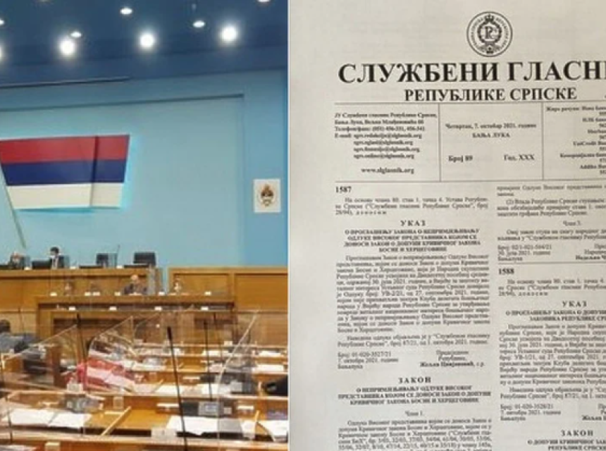 Nakon što je Inzko donio te izmjene, Narodna skupština RS-a je hitno, 30. jula, usvojila Zakon o neprimjenjivanju Odluke visokog predstavnika, kao i Zakon o dopunama Krivičnog zakona RS. Klub delegata bošnjačkog naroda u Vijeću naroda RS-a je Ustavnom sudu uputilo apelaciju za utvrđivanjem povrede vitalnog nacionalnog interesa, međutim 27. septembra je donesena negativna odluka po ovaj Klub.