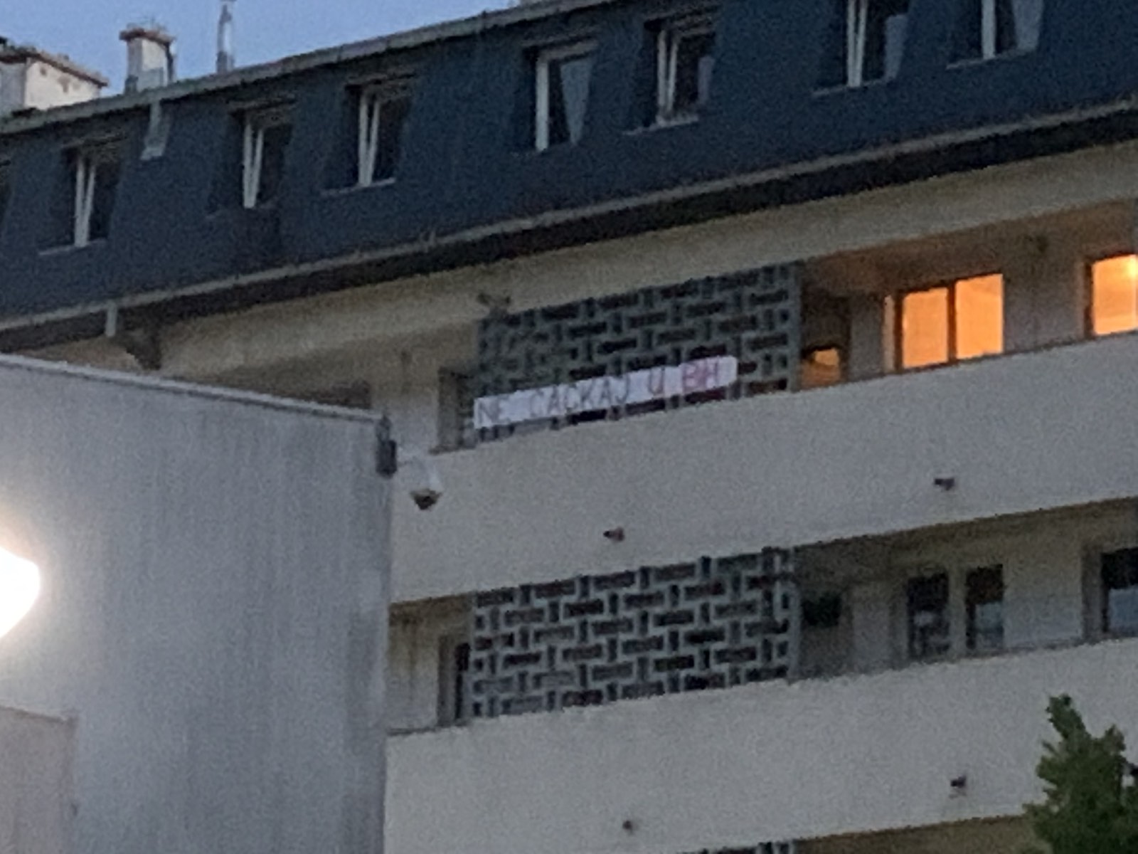 Zanimljiva poruka na jednom balkonu osvanula je tokom večerašnjih protesta ispred zgrade OHR-a.
