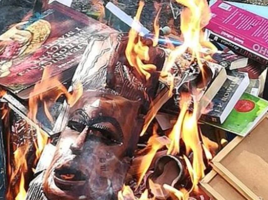 Evanđeoska grupa svećenika iz Gdanjska objavila je fotografije spaljivanja knjiga na Facebooku. Među stvarima koje su završile u vatri su i figura slona, maska afričkog plemena i kišobrana s motivom Hello Kitty.