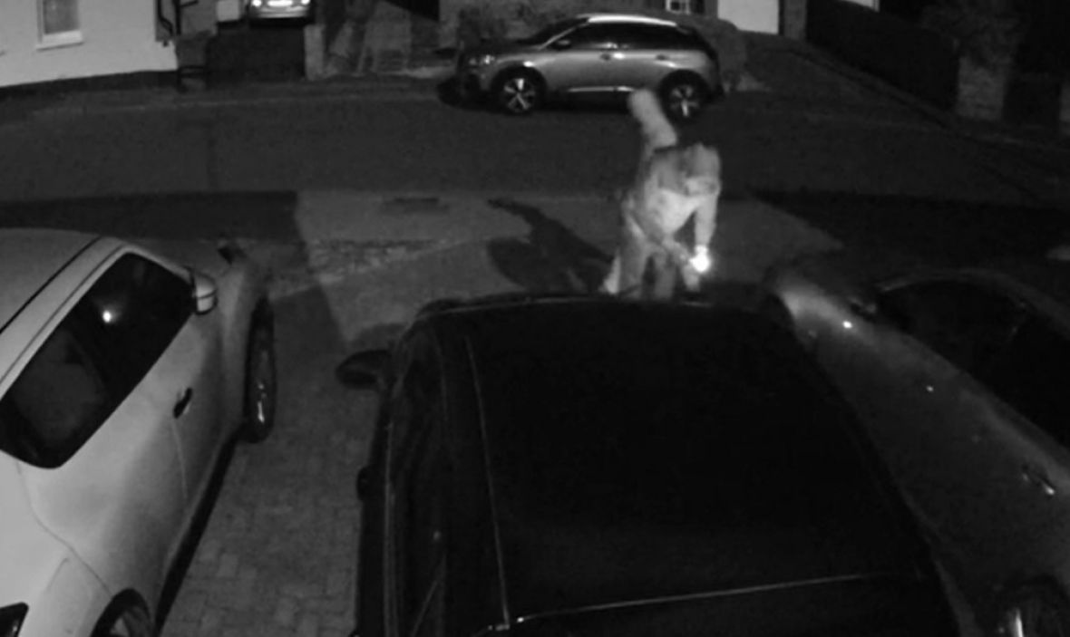 Nadzorna kamera u mjestu Weedon Ben u središnjoj Velikoj Britaniji snimila je počinjenje kaznenog djela paleža automobila u ranim jutarnjim satima 30. marta.