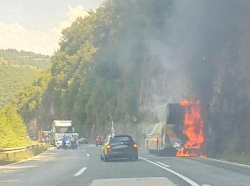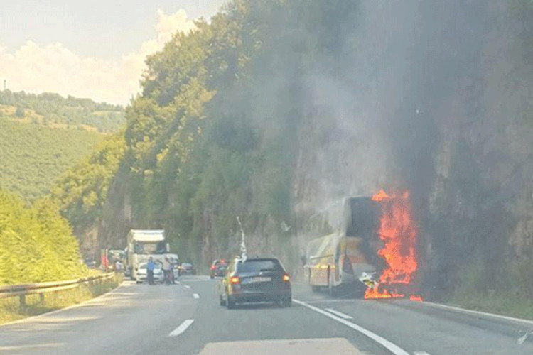 Kako se saznaje požar je izbio dok se autobus kretao putem u blizini motela “Lav”,a trenutno nije poznato ima li povrijeđenih.