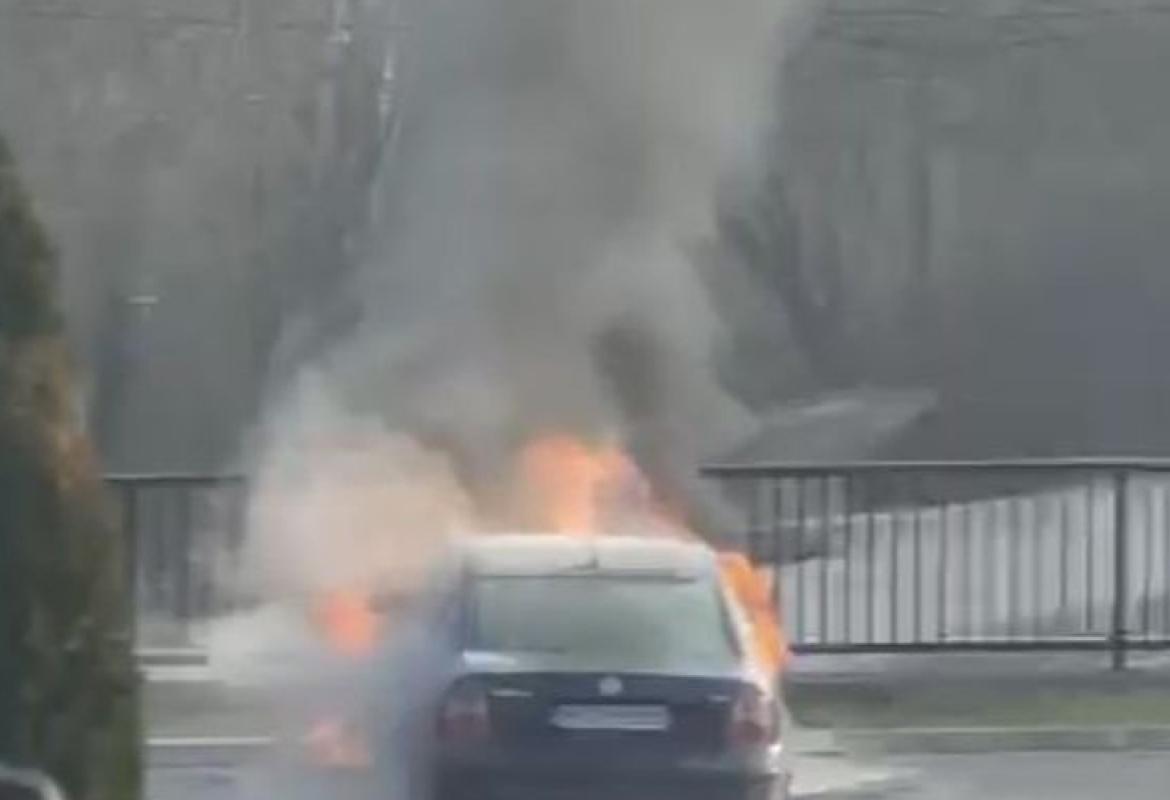 Ispred manastirske crkve Svetog Ilije u Krupi na Vrbasu jutros je došlo do većeg požara na privatnom automobilu Passat.
