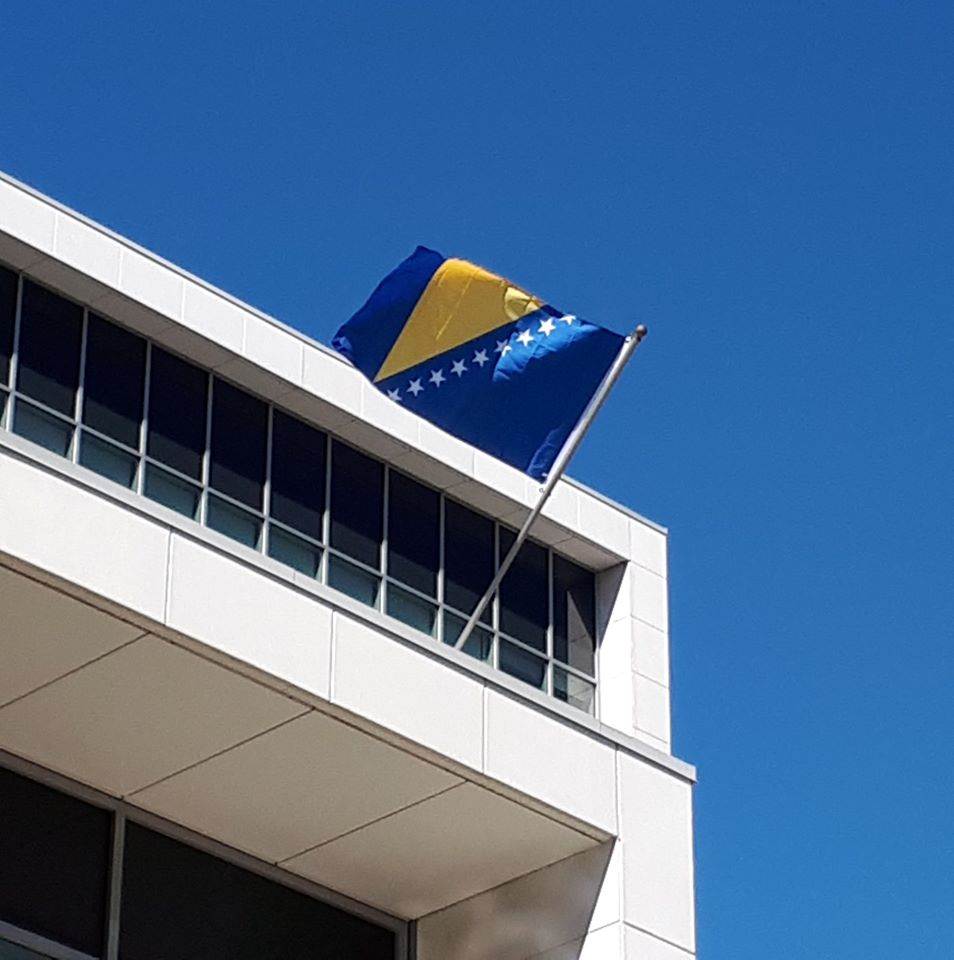Također, ispred skupštine ovog kanadskog grada piše: "Sretan 25. novembar Dan državnosti BiH". Historijski simbol Hamiltona je osvijetljen žutom i plavom bojom, bojama zastave BiH, što pokazuje podršku grada Danu državnosti Bosne i Hercegovine, navedeno je iz Institut za istraživanje genocida Kanada.