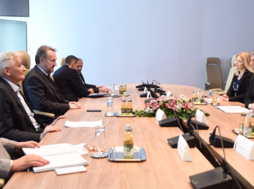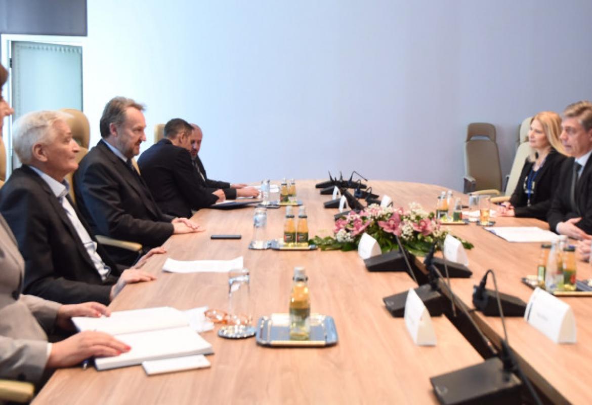 Predsjedavajući Kolegija Doma naroda Parlamentarne skupštine BiH Bakir Izetbegović i njegov zamjenik Nikola Špirić sastali su se u Sarajevu sa šefom Delegacije Evropske unije u BiH Lars-Gunarom Vigemarkom (Gunnar-Wigemark).