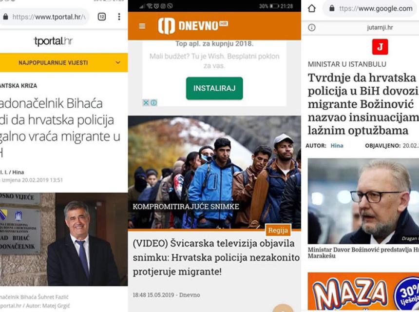 Švicarski novinari su u roku od dva dana dokumentirali četiri takva slučaja koji se nazivaju "push back", a u kojima je hrvatska policija, kršeći u Hrvatskoj važeće zakone, protjerala najmanje 70 migranata s teritorija Hrvatske. Većina tih migranata su porijeklom iz Afganistana, Pakistana i Alžira, a s njima su nakon protjerivanja iz Hrvatske razgovarali i švicarski novinari.
