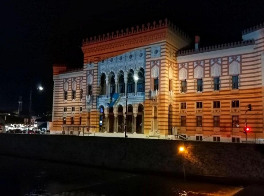 Sarajevska Vijećnica osvijetljena je večeras bojama austrijske zastave čime je obilježen Nacionalni dan te zemlje u Bosni i Hercegovini.