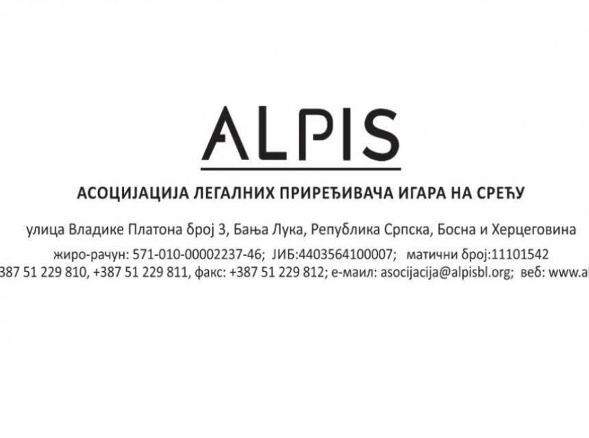 Asocijacija legalnih priređivača igara na sreću (ALPIS) je uoči sjednice Narodne skupštine Republike Srpske (utorak, 05.03.2019.) uputila službene dopise Ministarstvu finansija Republike Srpske, svim poslaničkim klubovima u Narodnoj skupštini Republike Srpske, Republičkoj upravi za igre na sreću, predsjednici Republike Srpske Željki Cvijanović, predsjedavajućem Predsjedništva Bosne i Hercegovine Miloradu Dodiku, predsjedniku Narodne Skupšine Republike Srpske Nedjeljku Čubriloviću i premijeru Republike Srpske Radovanu Viškoviću, prenosi Avaz.ba.