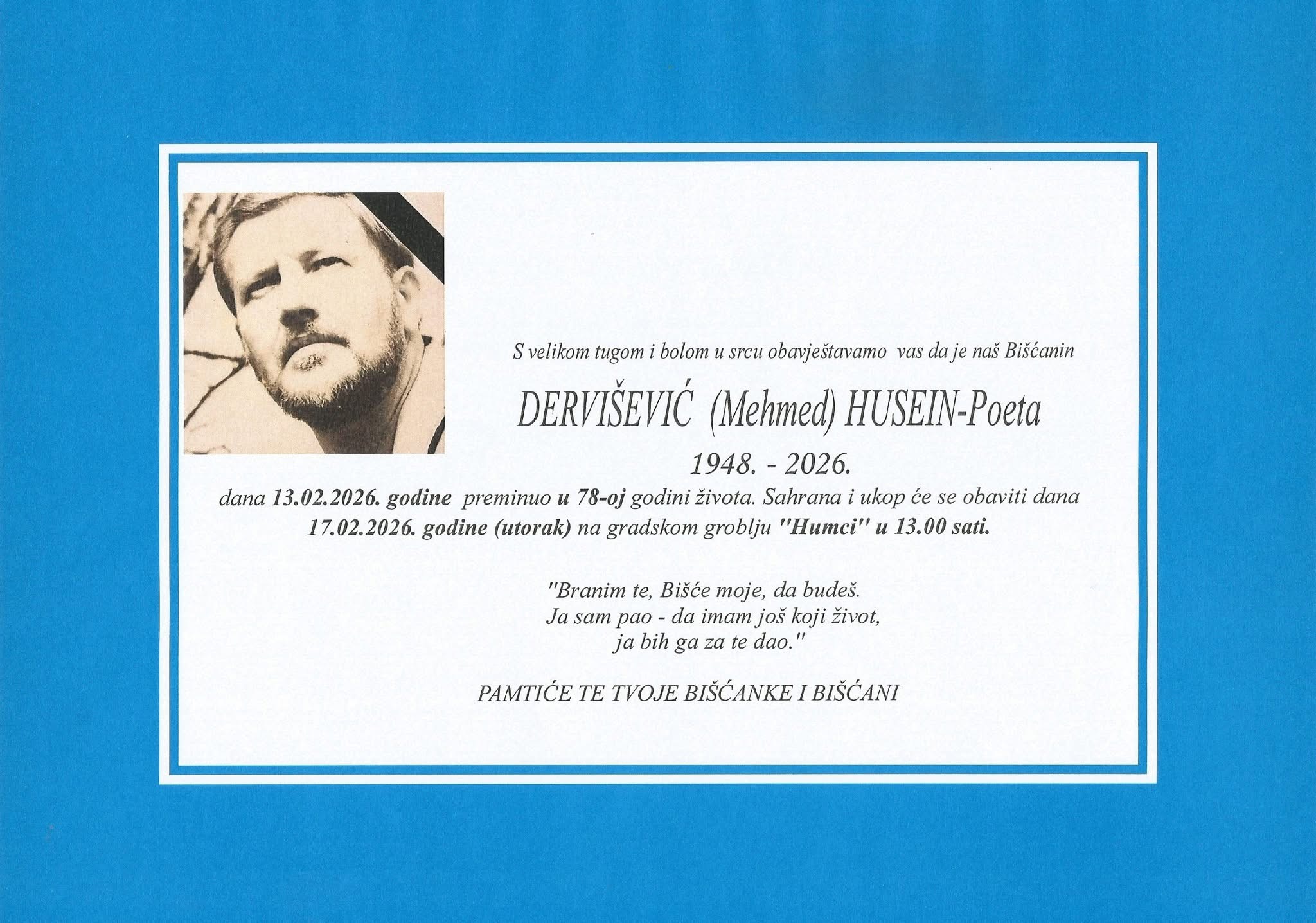 Sahrana i ukop će se obaviti dana 17.02.2026. godine (utorak) na gradskom groblju „Humci“ u 13.00 sati.