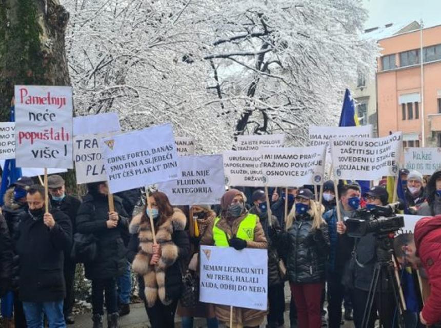 Sindikalisti javnih institucija i preduzeća u Kantonu Sarajevo protestirali su danas ispred zgrade Vlade Kantona Sarajevo jer tvrde da vlast nije ispunila njihove zahtjeve.